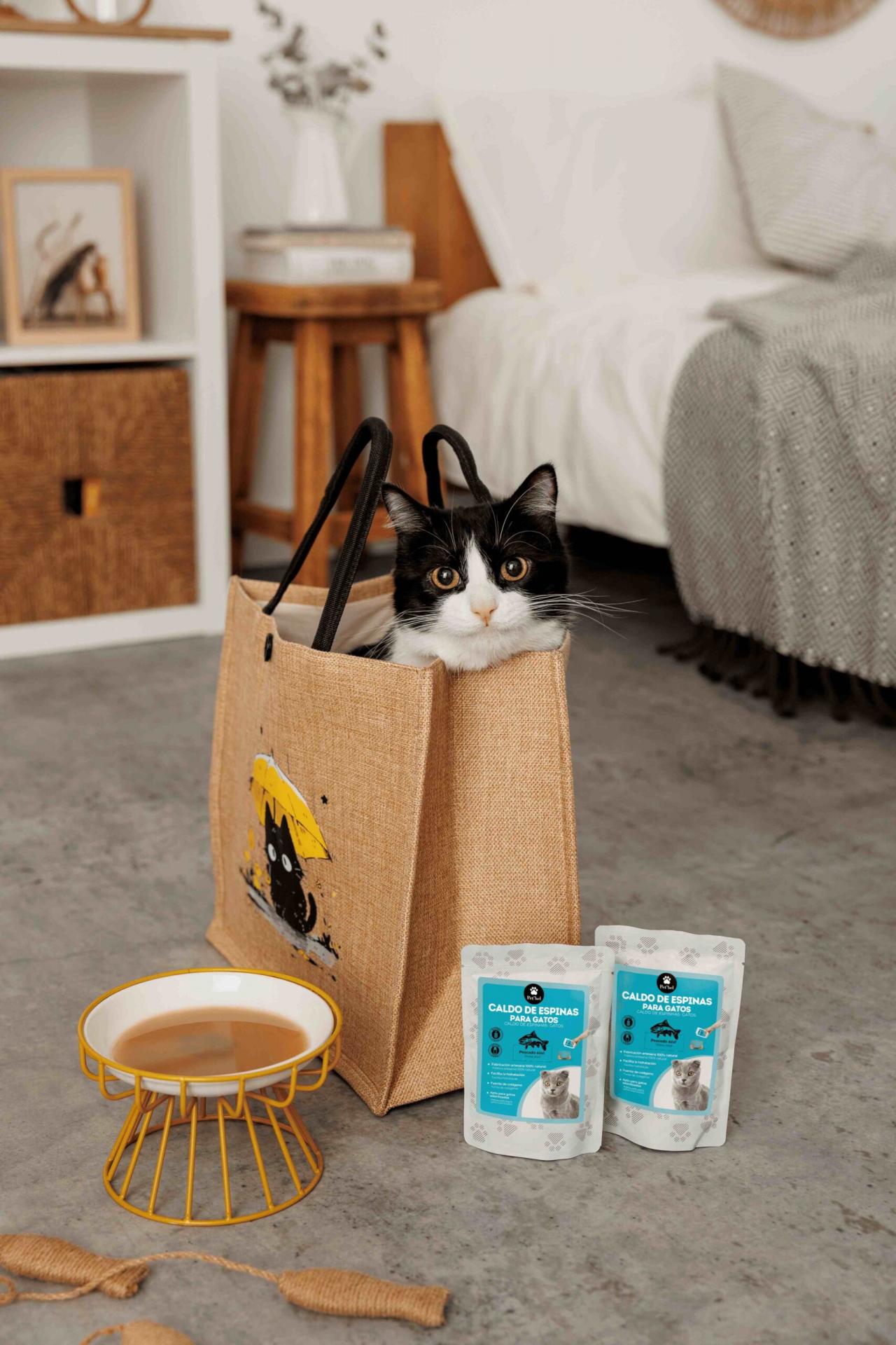 Sí, suena gourmet… y lo es. Con espinas de pescado nórdico rico en omega-3. Este caldo es una delicia funcional que apoya el sistema inmune, la piel, el pelo y hace que tu gato te mire con admiración (o al menos no con desprecio).