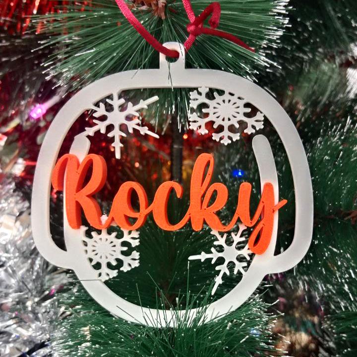 Añade un toque especial y personal a tu decoración navideña con esta bolita de navidad con el nombre de tu peludo.